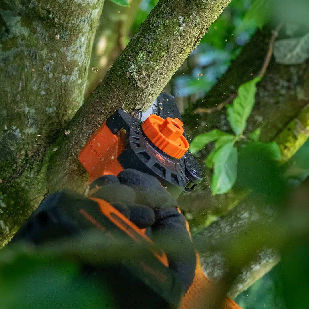 The most compelling benefit of the Forest Master 20V Cordless Mini Chainsaw is its cordless convenience. Say goodbye to the limitations of power cords and embrace the freedom to move around your garden or worksite without restrictions. The 20V cordless design allows you to navigate tight spaces and reach difficult areas effortlessly. Imagine pruning high branches or cutting through dense brush without the constant hassle of a trailing cord.