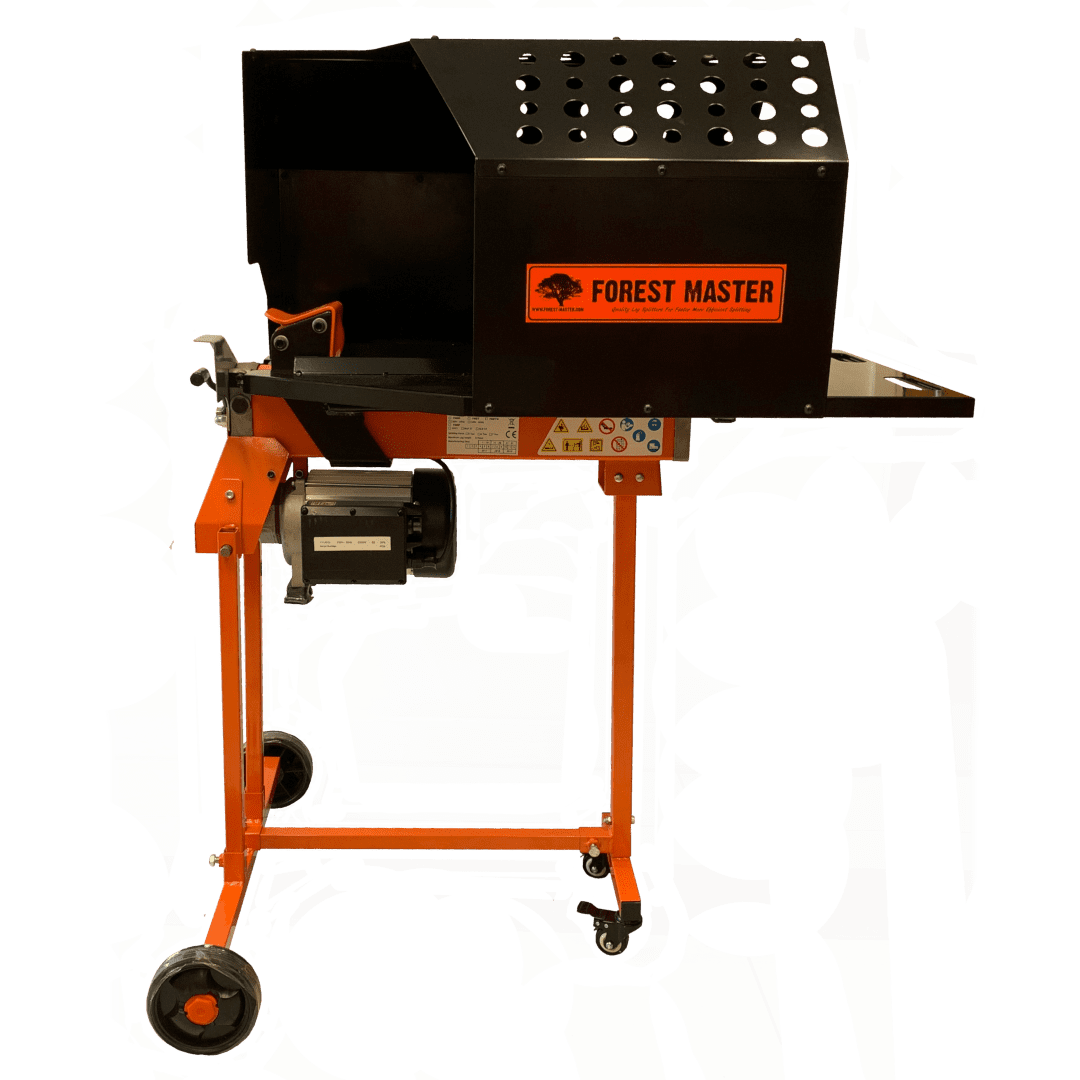 The Forest Master Log Splitter Work Bench and safety guard is a unique (Community Registered Design) accessory that catches the logs as they are split and eliminates the need to bend down to pick up split logs. It makes splitting safer as logs can’t fall off as they are split.