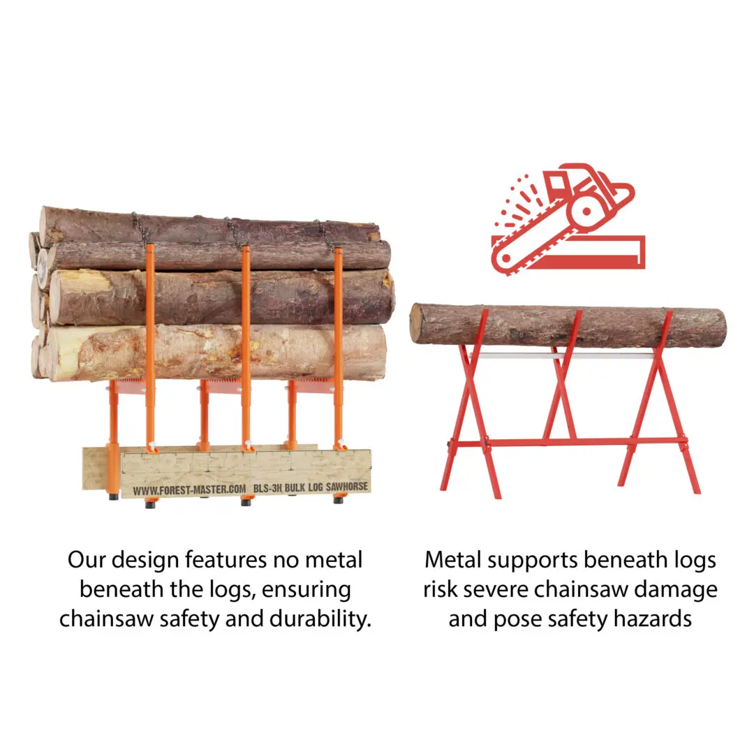 In essence, the Forest Master Bulk Log Sawhorse BLS-3H, with its patented design, is more than just a sawhorse. It’s a symbol of innovation, efficiency, and safety in log processing, making wood cutting not just easier, but also safer and more enjoyable.